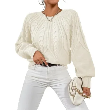 Show more Introducing the stunning Dokotoo Cable Knit Pullover Sweater, a staple in every woman's wardrobe. This beautifully crafted sweater showcases a captivating lantern/puff sleeve design that adds a delightful touch of elegance and uniqueness. Made from ultra-soft, high-quality fabric, it not only provides warmth but also ensures a comfortable fit that feels gentle against the skin.