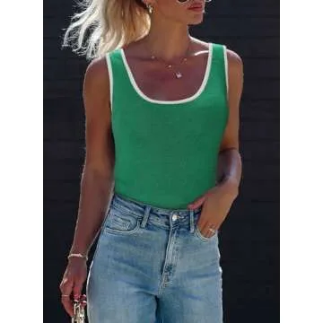 Dokotoo Scoop Neck Sleeveless Tops for Women 2025 Casual Summer Lightweight Slim Fit Color Block Ribbed Tank Top Basic Cute Knit Cami Shirts Womens St Patricks Day Shirt Green X-Large