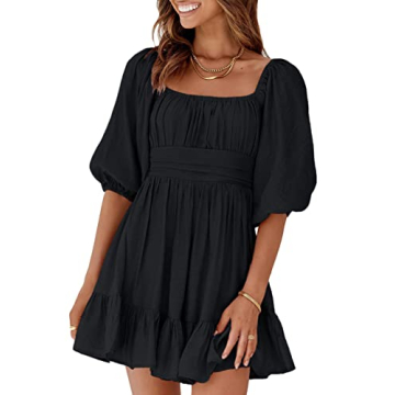 Show more Introducing the Dokotoo Square Neck Black Dress: a stunning blend of elegance and effortless style designed for the modern woman. This mini dress features an exquisite square neckline paired with charming lantern sleeves, creating a unique retro aesthetic that is both chic and stylish. Tailored with a soft, high-quality material that is fluffy yet breathable, this dress perfectly balances comfort and sophistication. The tiered ruffle hemline adds a playful touch, while the lovely tie-back design enhances your silhouette, presenting a gorgeous open back that can be adjusted for the perfect fit. Whether you're heading to a summer wedding, birthday party, or a casual dinner, this dress will make you feel fabulous while turning heads wherever you go.