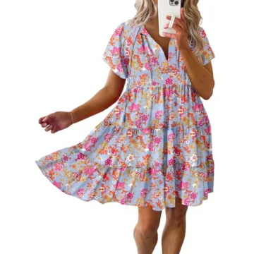 Dokotoo Summer Dresses for Women Ladies Short Sleeve Floral Sundresses for Women 2024 Casual Short Sleeve Swing A Line Boho Mini Dress Pink X-Large