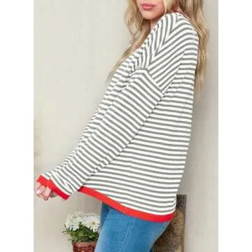 Dokotoo Summer Tops for Women 2025 Fashion Spring Crewneck Long Sleeve Clothes Tops Casual Striped Color Block Womens Pullover Sweater Gray Large