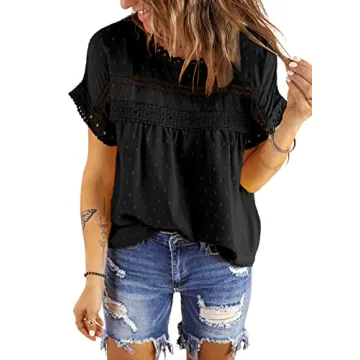 Discover the epitome of feminine elegance and comfort with the Dokotoo Women's Crew Neck Crochet Lace Shirt. This stunning blouse is an essential piece for any fashion-forward wardrobe, crafted from high-quality fabric that guarantees outstanding softness and breathability. Suitable for all-day wear, this beautiful shirt combines a classic crewneck design with exquisite crochet lace edges, making it the perfect go-to top for both casual outings...