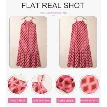 Dokotoo Sun Dresses Women Summer Casual Maxi Dresses Scoop Neck Boho Beach Dress Sleeveless Spaghetti Strap Sexy Dress Ruffle A Line Flowy Dresses Small Multicolor