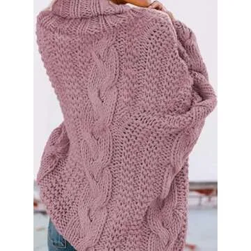 Dokotoo Sweater for Women Winter Clothes Warm Chunky Turtleneck Cowl Neck Balloon Long Sleeve Fall Tops Oversized Cable Knit Sweaters Long Tunic Pullover Jumpers Pink M
