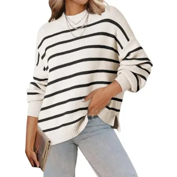 Show moreIntroducing the Dokotoo Oversized Sweater for Women – where fashion meets comfort! This sweater is designed to be the perfect blend of chic and casual, making it an essential addition to your fall wardrobe. Featuring a stylish color block stripe pattern and crafted from a soft, thicker knit, it provides warmth without compromising on style. The innovative shoulder seam external technology enhances the fashionable appeal, while the drop shoulder cut adds a relaxed vibe. Whether you’re dressing up for a business casual day or keeping it comfy for a day out, this versatile piece has got you covered.