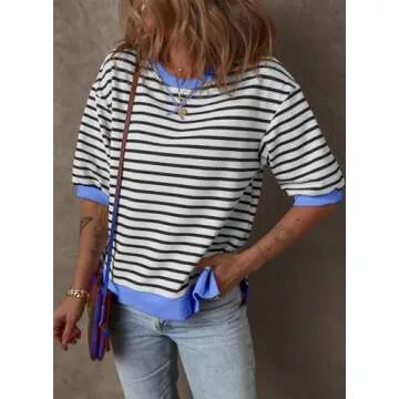 Show moreIntroducing the Dokotoo Women’s Fashion Summer Tops, an effortlessly stylish and comfy addition to your wardrobe. Crafted with a premium blend of 95% cotton and 5% elastane, this sweatshirt is designed to deliver unparalleled softness and breathability. The unique striped pattern combined with a subtle color block on the sleeves and hem brings a modern twist to a classic silhouette. Perfect for various occasions, this versatile piece beautifully merges comfort with fashion, making it a must-have beautifully fitting top that you'll reach for again and again.