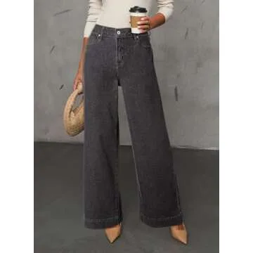 Dokotoo Wide Leg Loose Stretch Jeans for Women Casual High Waisted Cargo Jeans Denim Pants Grey Size 12