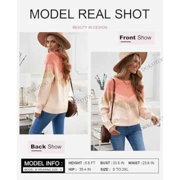 Show moreIntroducing the **Dokotoo Women's Fashion V Stripe Pattern Knitted Oversized Sweater**, a perfect blend of comfort, style, and versatility. Designed for those chilly days ahead, this oversized pullover sweater is fashioned from high-quality fabrics, providing a **soft**, **lightweight**, and **breathable** experience that you can wear throughout the day. Its eye-catching color-block design and unique V stripe pattern not only enhance its aesthetic appeal but also flatter a variety of body types, making it a must-have addition to your winter wardrobe. Whether you’re running errands, meeting friends, or enjoying a cozy night in, this sweater has you covered. Its **crew neckline** and long sleeves offer an effortless chic look that is both timeless and trendy.