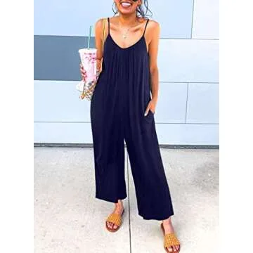 One of the standout features of this jumpsuit is its adjustable spaghetti straps, allowing you to customize the fit according to your preference. The solid color adds a touch of elegance, making it easy to pair with your favorite accessories. Additionally, the jumpsuit comes with two handy side pockets, perfect for storing your essentials while on the go. The long, stretchable pant legs and loose fit make it not only fashionable but also incredibly comfortable for all-day wear.