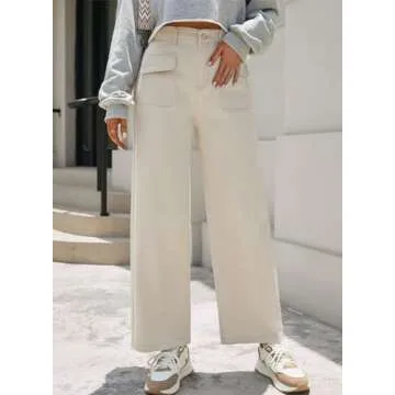 Dokotoo Women's Pants High Waisted Cargo Pants Women Baggy Jeans for Women Straight Wide Leg 2024 Fall Outfits Fashion Clothes Casual Pants Trendy Pocket Teen Girls Trousers Stretch Denim Pants Khaki