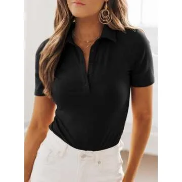 Dokotoo Women's Polo Shirts Short Sleeve Button Down Shirts for Women Business Casual Collared Work Tops Basic Slim Fit Tshirts V Neck Tops Trendy Summer Outfits Clothes 2025 Black Tops for Women L