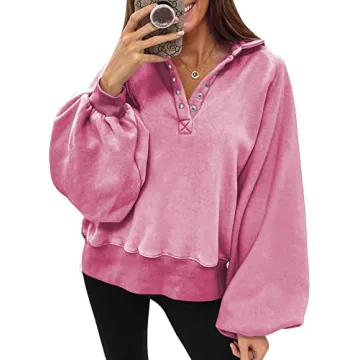 Show moreIntroducing the Dokotoo Women’s 2023 Fashion Oversized Loose Lantern Sleeve Button Collar Pullover Sweatshirt, a quintessential piece for every modern woman's wardrobe. This sweatshirt isn't just about warmth; it combines chic design with unmatched comfort, featuring a stylish polo collar and long, billowy sleeves that effortlessly enhance your silhouette. With its unique button detailing and cozy cropped hem, it strikes the perfect balance between laid-back leisure and trendy fashion. Ideal for layering or making a statement on its own, it’s suitable for any setting—from coffee dates to weekend adventures.