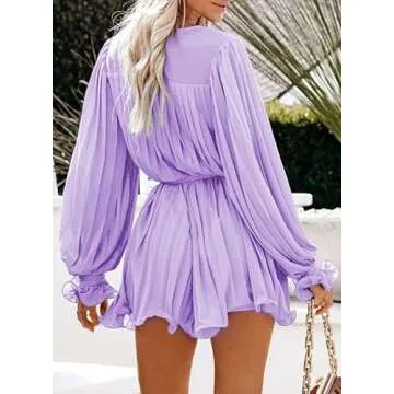 Show more Introducing the fabulous Dokotoo Womens 2023 Summer Buttons V Neck Tie Waist Flared Pleated Drape Long Sleeve Rompers Jumpsuits, a stunning combination of style, comfort, and versatility. Designed for the modern woman, this romper features a unique pleated and drape design that ensures you turn heads wherever you go. The beautiful, eye-catching color adds a vibrant touch to your summer wardrobe, while the tie waist cinches your silhouette for a flattering fit. With its v-neck and flared long sleeves, this outfit strikes the perfect balance between elegance and chic sophistication, making it an ideal choice for any occasion.