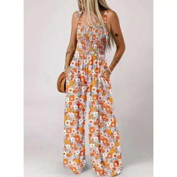 Show more Introducing the Dokotoo Women's Overalls, a stylish and comfortable addition to your wardrobe! Crafted with lightweight and soft materials, these overalls offer a flexible and breathable fit that is perfect for any occasion. The unique design features a One Piece Sleeveless Jumpsuit with a chic Square Neck and Wide Leg Pants that enhances your natural silhouette.