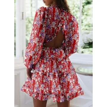 Show more Step into summer with our exquisite Summer Cute Dress, designed to make every moment feel special. This dress features a deep v-neck, long flared sleeves, and delicate ruffle details, masterfully crafted to accentuate an empire waist that perfectly flatters any figure. The backless design and flowy A-line hem create a truly elegant look for those warm summer days. Ideal for a variety of occasions, this mini dress showcases beautiful pattern prints, allowing you to express your personal style with options ranging from floral to leopard designs.