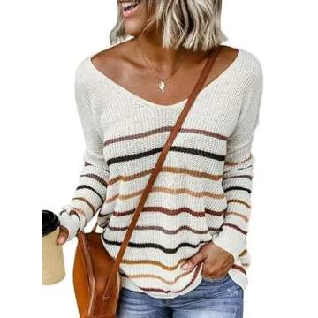 Show more Step into style and comfort with the Dokotoo Womens Juniors Cute Summer Fall 2024 V-Neck Off The Shoulder Striped Long Sleeve Lightweight Comfy Cozy Ribbed Knit Beach Pullover Long Tunic Sweater. Crafted from a soft knit material, this pullover is designed with long sleeves and a charming delicate ribbed pattern, adding a unique twist to your wardrobe. The casual V-neckline not only enhances your silhouette by offering a slimming effect, but it also provides a relaxed aesthetic that's both chic and approachable. The loose fit shape is perfect for all body types, promising an amazing wear experience that combines comfort with a modern touch.