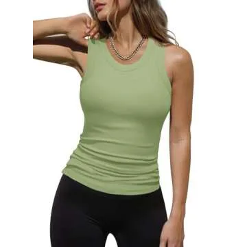 Dokotoo Womens Ladies Athletic Plus Size Basic Ribbed Thick Strap Low Cut Solid Color Tight Slimming Fitted Sleeveless Shirts Sports Workout Long Tank Tops for Women Activewear Tops Green 2XL