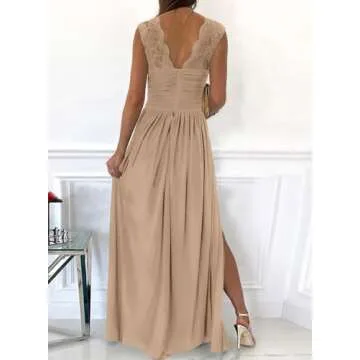 Show moreIntroducing the stunning Dokotoo Women's Elegant Floor Length A Line Dress – a true masterpiece designed for those memorable occasions when you want to turn heads. This eye-catching evening dress features a deep V-neckline and a fashionable backless design that exudes sophistication while highlighting your figure beautifully. With its floor-length silhouette and beautifully ruched detail, this dress is not just a piece of clothing; it's a statement of elegance and fashion sense. The soft and lightweight fabric provides maximum comfort throughout your event without compromising on style.