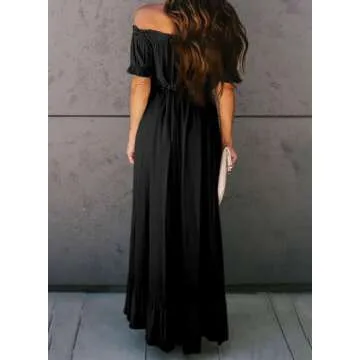 Dokotoo Womens Ladies Summer Sexy Off The Shoulder Casual Short Sleeve Button Down Maxi Midi Long Dress High Low Solid Ruffle Easter Party Dresses Black Medium