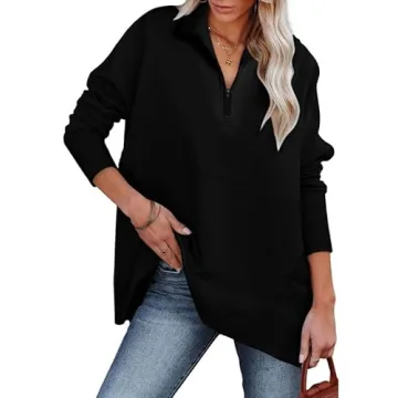 Show moreIndulge yourself in the delightful warmth and style of the Dokotoo Women's Oversized Half Zip Pullover Sweatshirt – an essential addition to your fall and winter wardrobe. Designed with a focus on both comfort and chic appeal, this pullover is crafted from lightweight, ultra-soft fabric that offers a luxurious feel against your skin. Its trendy, oversized silhouette not only provides a relaxed fit but also allows for versatile styling, making it perfect for any occasion. With a unique half zip collar and long sleeves, this sweatshirt effortlessly blends function with fashion, allowing you to easily layer it over your favorite outfits.