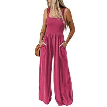Dokotoo Womens Plus Size Rose Jumpsuits for Women Overalls Loose Casual Wide Leg One Piece Sleeveless Solid Jumpsuit Long Pant Rompers with Pockets X-Large
