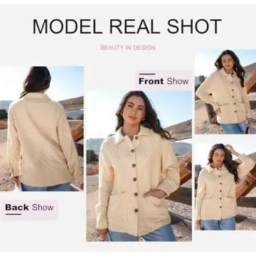 Show moreIntroducing the Dokotoo Women’s Collared Quilted Jacket, the perfect blend of style and comfort for the modern woman. This classic button-down shacket features a unique quilted design, providing both warmth and casual elegance, making it a versatile addition to your wardrobe. Crafted from quality materials, this jacket is available in an array of stunning colors including navy blue, apricot, and pristine white, ensuring you find a shade that complements your personality and style. With its long sleeves and oversized fit, this jacket is not just a fashion statement, but a practical choice for cooler days. Whether you’re heading out for a casual lunch or enjoying a cozy evening outdoors, this jacket has you covered.