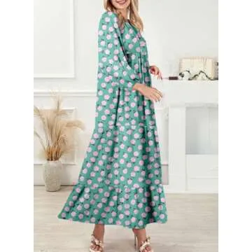 Dokotoo Womens Spring Dresses Lantern Long Sleeve Dress V Neck Maxi Dress Smocked Ruffle Boho Dress Casual Beach Dresses for Women Vacation X-Large Green