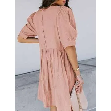 Dokotoo Womens Sundress Juniors Cute Dress Summer Baby Doll Tunic Dress Crewneck Lantern Short Sleeve Loose Casual Work Pocketed Mini Short Skirt Shift Dress Pink Medium