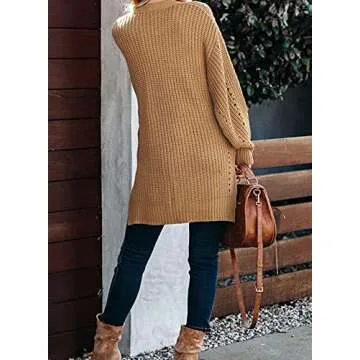 Dokotoo Womens Winter Fall 2023 Oversized Open Front Cozy Long Sleeve Cardigans Sweaters Soft Thick Chunky Cable Knitting Fashion Coats Outerwear Cardigans Jackets with Pockets Apricot Small