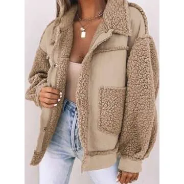 Dokotoo Womens Winter Sherpa Lined Shacket Jackets Fleece Snap-Button 2024 Fashion Trucker Long Sleeve Open Front Warm Thick Outwear Coats for Women,M,Brown