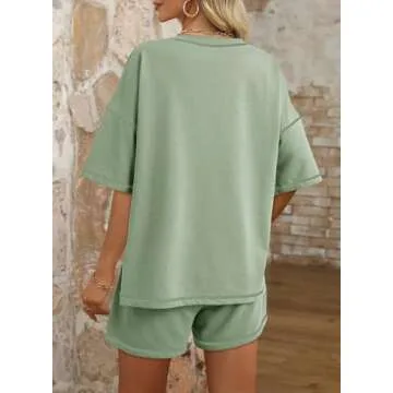 Dokotoo Workout Sets for Women 2 Piece Set Comfy Casual Womens Lounge Sets Solid Round Neck Short Sleeve Sweatsuit Shirts Matching High Rise Drawstring Shorts with Pockets Green Small