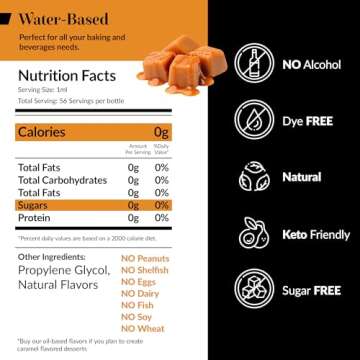 Show moreIndulge your culinary creativity with the Dolce Flav Natural Caramel Extract, a premium water-soluble flavoring designed for a wide range of uses. This 2-ounce bottle is bursting with rich, authentic caramel flavor, perfect for enlivening your baked goods, enhancing beverages, or whisking up delightful desserts like ice cream, mousses, and puddings. Each drop creates a velvety wave of sweetness and depth that delivers an irresistible treat without overwhelming your palate. Whether you’re a professional chef or a home cook, this versatile extract elevates any dish with ease.