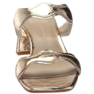 Elevate your summer style with the Dolce Vita Women's Ilva MID Heeled Sandal, crafted from luxurious gold distressed leather. This stunning sandal features a chic block heel, perfect for adding height while maintaining comfort and stability. With an imported synthetic rubber sole, the sandals are designed to provide excellent traction on various surfaces, making them ideal for both casual outings and more formal events. The elegant design and versatile color make these sandals a must-have...