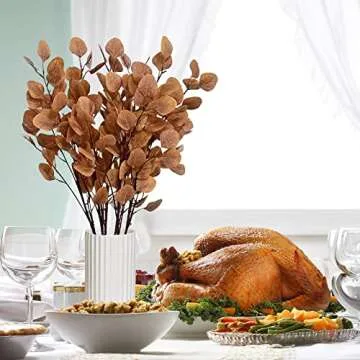What sets these eucalyptus leaves apart is their incredibly realistic appearance. The intricate textures mimic the look of real foliage, creating a vibrant and lifelike experience that will surely impress your guests. Their natural green hues coupled with subtle autumnal accents make them a striking addition to any seasonal decor.
