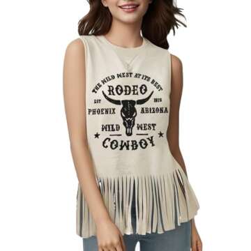 When compared to other ordinary tank tops, the DOLITEAN Rodeo Fringe Vests Tee clearly stands out with its unique cow skull graphic and Western-themed text. Most competitors offer basic T-shirts without any distinctive style, while our product combines comfort with a spirited vintage aesthetic that resonates with cowboys and country fans alike. Additionally, the high-quality fabric ensures durability, allowing you to enjoy its stylish appeal for seasons to come.