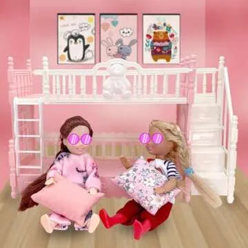 Introduce your little one's imagination to endless possibilities with our stunning Doll Clothes and Accessories set, designed specifically for 5.3 inch dolls. Featuring an enchanting pink bunk bed that is easy to assemble and provides a sturdy sleeping space for dolls, this set is perfect for encouraging kids to cultivate healthy sleep habits. Crafted with excellent attention to detail, the bunk bed ensures it holds up even through the most energetic playtime, allowing for worry-free adventures alongside...