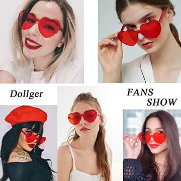 Dollger Heart Shape Sunglasses for women One Piece Transparent Rimless Candy Color Heart Glasses Red