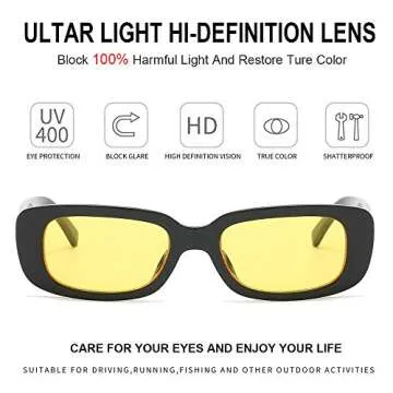 Dollger Women's Rectangle Retro Sunglasses - UV400 Protection, Yellow Frame