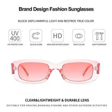Dollger Trendy Rectangle Sunglasses For Women Men Trendy Retro Rectangular Pink Shades sunglasses pink and blue