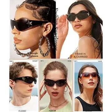 Show more Step into the spotlight with the FUFURISTIC Y2K SUNGLASSES, a stunning representation of the vibrant 2000s fashion era! These large-area lens wrap sunglasses are not just eyewear; they are a magical portal to a time defined by bold choices and eye-catching styles. You'll instantly transform any outfit as these sunglasses provide the perfect balance between functionality and trendiness. Crafted with high-quality materials, these shades are designed to elevate your fashion game while providing unmatched comfort.