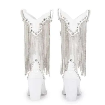 Dolls Kill Present Perfect Cowboy Boots by Sugar Thrillz - Vegan Leather Footwear With Rhinestone Fringe and Jewel Studs, Perfect for Sparkling Style - White, 7