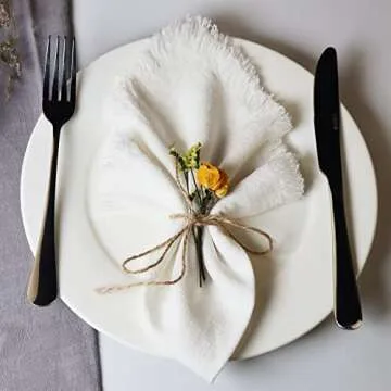 Dololoo Handmade Cloth Napkins with Fringe,18 x 18 Inches Cotton Linen Napkins Set of 6 Versatile Handmade Square Rustic Fringe Napkins for Dinner, Wedding and Parties, White