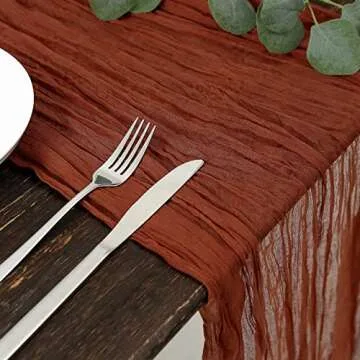 DOLOPL Thanksgiving Table Runner Fall Cheesecloth Table Runner 13.3ft Rust Gauze Cheese Cloth Runner Rustic Runner 160inch Long for Thanksgiving Wedding Bridal Baby Shower Table Decorations
