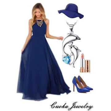 Dolphin Necklace 925 Sterling Silver Mothers Day Gifts For Women Necklace Chains (Heart Blue Dolphin Necklace)