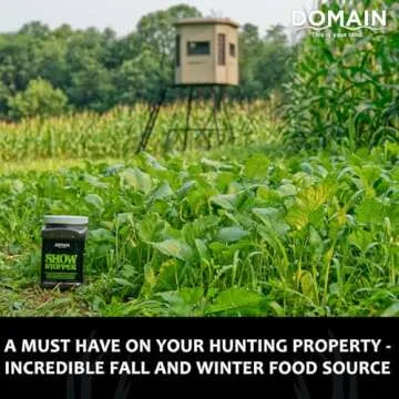 Show more Introducing the Domain Outdoor Show Stopper Food Plot Seeds for Deer, the ultimate blend designed to attract and nourish deer, ensuring they thrive in your hunting grounds. This remarkable product includes a mix of hybrid forage brassica, rutabaga, turnip, and rapeseed, all meticulously crafted to create a bountiful food plot covering up to 1/2 acre (22,000 sq. ft). Whether you're a novice landowner or an experienced hunter, you can count on this blend to deliver spectacular results with its fast germination and easy planting capabilities.