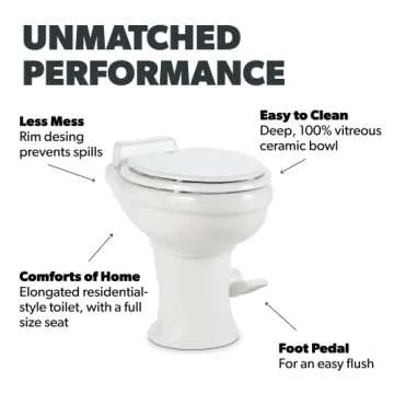 Dometic 320 Series Standard Height Gravity RV Toilet with Elongated Ceramic Bowl