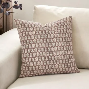 DOMVITUS 20x20 Floral Pillow Cover - Cozy Cognac Brown for Living Room
