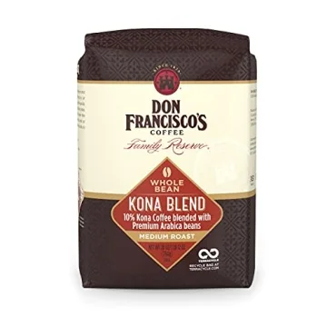 Introducing Don Francisco's Kona Blend Medium Roast Whole Bean Coffee, a meticulously crafted blend that combines the unique essence of 10% Kona coffee with premium 100% Arabica beans. Every 28-ounce bag carries a smooth, well-balanced flavor profile, highlighted by subtle floral aromas and delicate fruity notes, making it an exquisite choice for coffee lovers seeking a refined yet comforting cup. This coffee is perfect for both everyday enjoyment and special moments, ensuring that each sip...