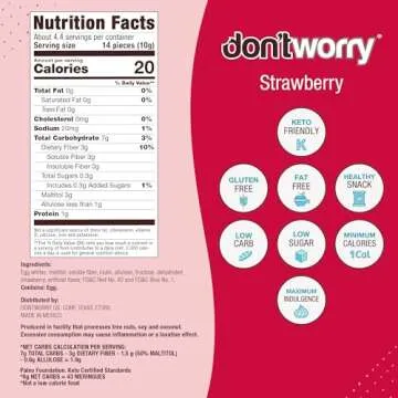 Show more Discover an extraordinary snacking experience with the Don't Worry Keto Friendly Meringue Cookies. These delightful treats come in a luscious strawberry and vanilla flavor, boasting an astonishing only 4 calories per cookie! Perfect for those following a keto diet or anyone looking to indulge without the guilt, these cookies are crafted with ingredients that are not only low fat and low sugar, but also gluten-free. With natural sugar alternatives, you can savor every bite knowing you are making a healthy choice. Each pack contains a tantalizing variety that redefines guilt-free snacking, making them an essential addition to your pantry.