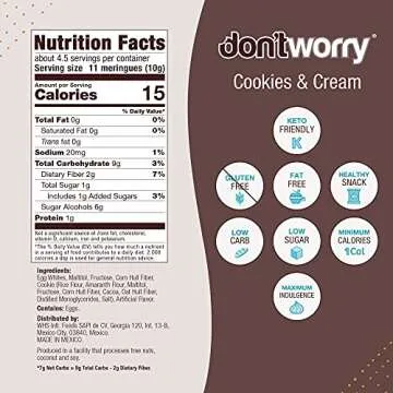 DON'TWORRY Keto Friendly Merengue Cookies | Only 1 Calorie per piece! | 2 Pack - Cookies and Cream | Healthy Candy, Gluten Free Snacks, Low Carb, Low Sugar, Low Calories